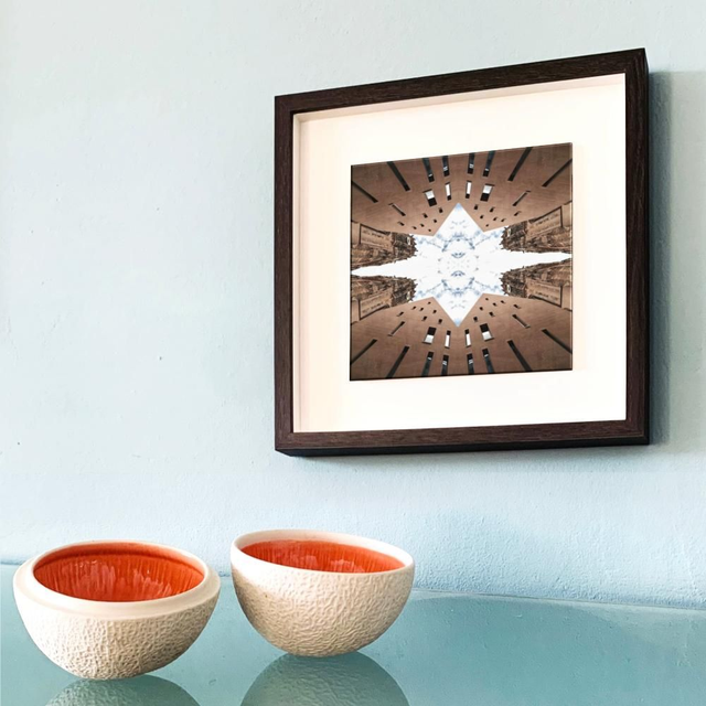 Materialien: Digitaler Fotodruck, Spiegelkachel / Maße inkl. Holzrahmen: 23 x 23 cm / Holzrahmen unverglast, zur Vermeidung störender Spiegelungen